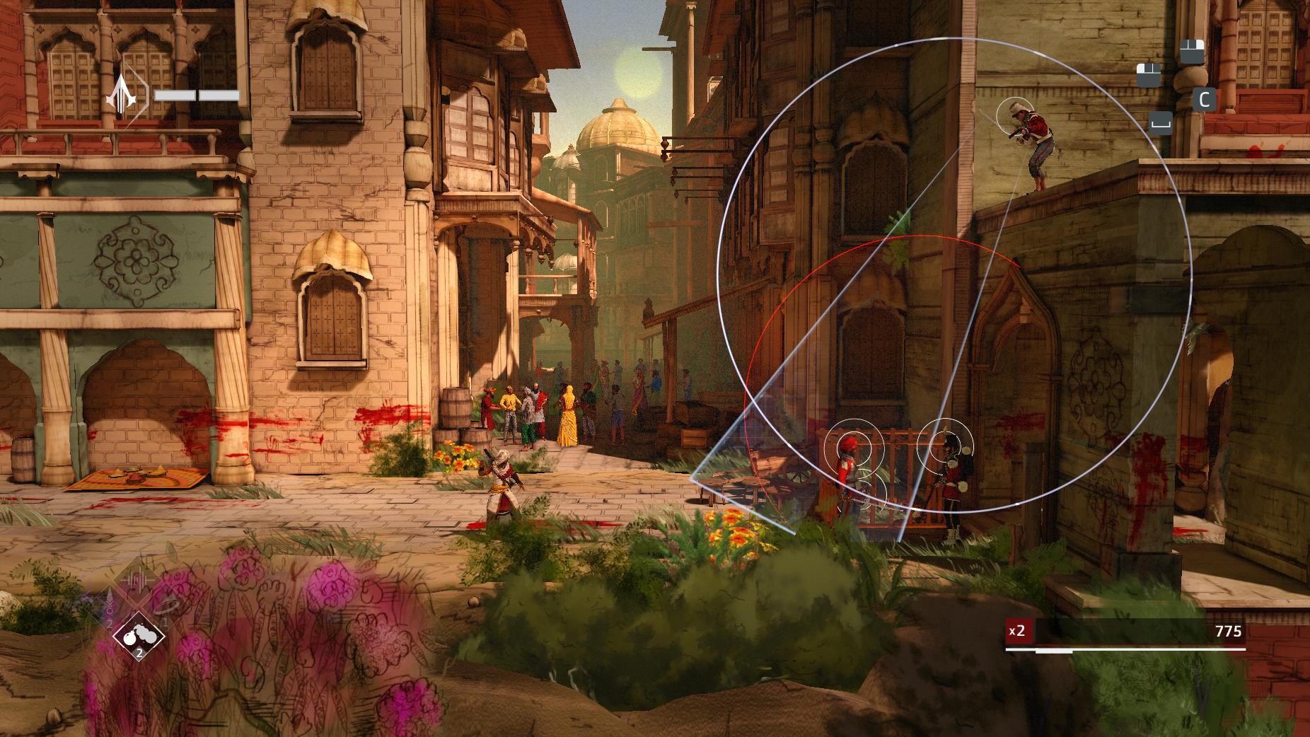 Визуално играта ми се понрави. Повече от Assassin’s Creed Chronicles: China. Индия наистина е оформена в прекалено анимационен, ярък стил – но все пак ми допада как изглежда. Определено стъпка напред, сравнено с миналата игра.