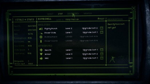 Общо взето всичко, което не е типично пуцане може да се окачестви като чисто козметично в Bombshell. Специални умения има... колкото да се каже, че ги има. И без тях сте си окей. Налична е ролева система, която използва и виртуална валута, която намираме из света, и скил точки, които получаваме при вдигане на ниво. Но те са крайно повърхностни. Тип „с 1 точка си купуваш 10 кръв или още 5 щит“. В днешно време, която почти всяка игра има някаква ролева система... това е нелепо.