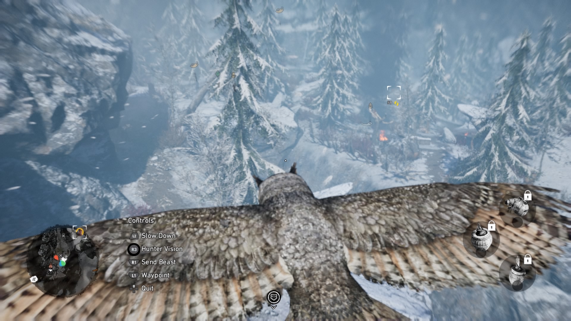 Ако сте гледали рекламните материали на Far Cry Primal сте наясно, че имате и бухал, който може да изследва картата за вас от високо. Само дето тая гад е способна и да атакува! Рано-рано в играта отваряте опцията бухалът да се спусне от небето и да убие противник с един удар! И в резултат аз си заставах зад някой храст, сякаш ще сера, пусках бухала да хвърчи, тагвах противник, който ягуарът ми убиваше, пусках атаката на летящата твар. И след това чаках 1 минута, докато cooldown-ът се презареди. В което време всъщност можех да задам на малкото котенце да нападне още някой противник и да му дам месо, че да си напълни кръвта. И хоп, след 5 минути в базата остават само най-тежките гадове, които поне при мен бяха най-много два броя. Викам тигърчо, пускам го да танква, набивам им няколко копия в главите и финито. Базата е превзета. Да не говорим, че все още с джойстик не мога да се прицелвам както трябва... предполагам, че на PC при налична мишка ситуацията ще е доста, доста по-различна. Гледам немалко хора твърдят, че играта е лесна. Вероятно понеже има „конзолна“ трудност. Поне за мен е що-годе окей на PS4-ката. Но все пак – не защото играта е толкова сложна, а защото аз не съм достатъчно ефективен с джойстик...