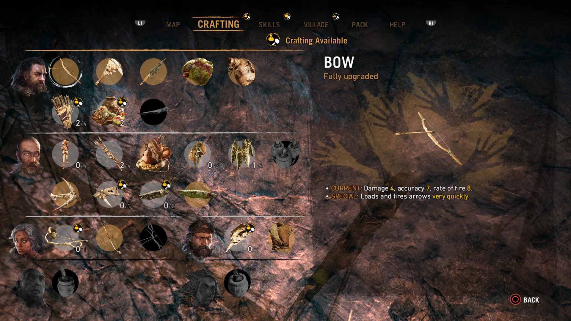 Въпреки тези новости крафтингът си е едно към едно с миналите игри. Съберете X кожи от Y животни плюс още нещо си, че да получите ъпгрейд на това или онова оръжие. Естествено животните и някои специални видове съчки/камъни се намират в по-трудни зони, в които странстването рано в играта не е толкова лесно.