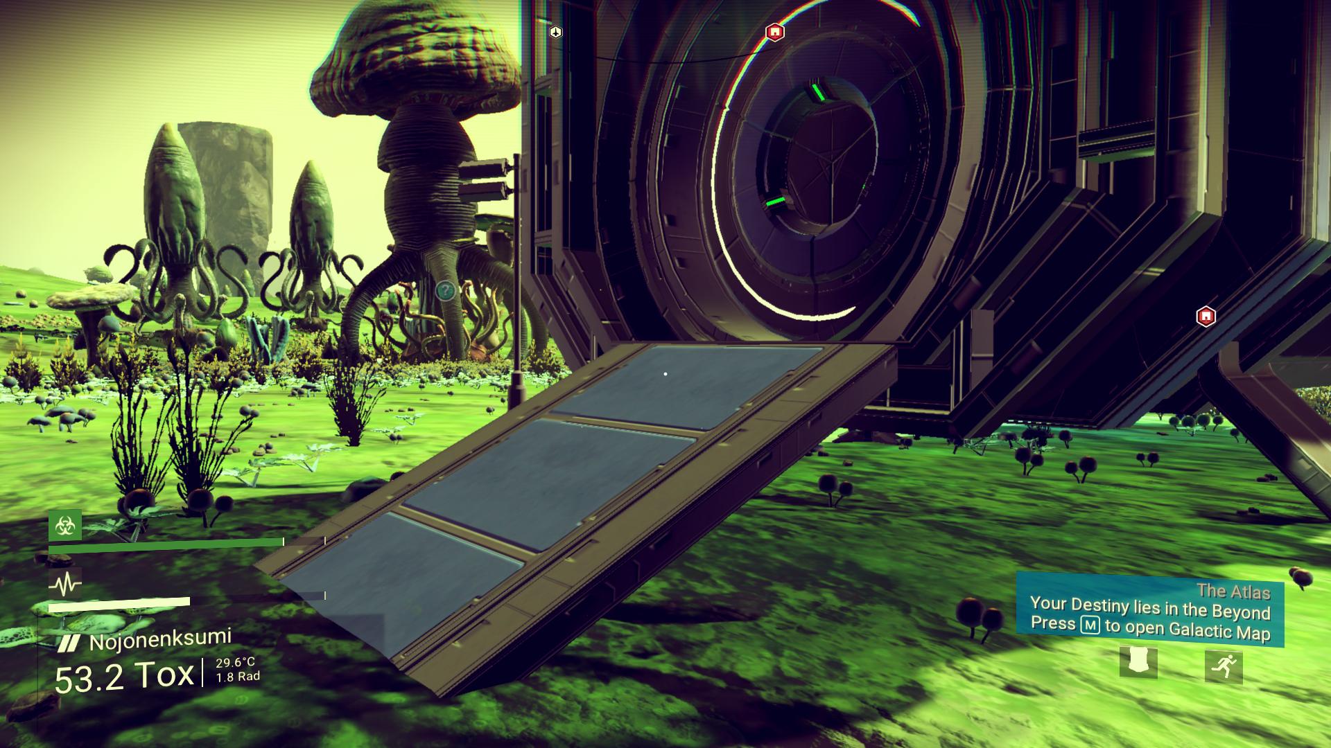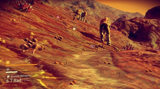Така в общия случай имах чувството, че цъкам... пешеходен симулатор. И това всъщност не беше далеч от реалността. Кацаш някъде, ходиш 100 метра, обираш каквото има откъм ресурси и се връщаш – я с търчане, я с прелитане благодарение на ракетната раница. Естествено опция за телепортация обратно до кораба няма – защото защо да има? Заради което винаги трябва да сте близо до него – на една от планетите ходех сигурно половин час с надеждата да намеря търговска станция (те ви дават възможност да си телепортирате кораба до тях). Е, такава нямаше. А също и лесен начин да се върна до летателния си апарат. Което означаваше, че още половин час се връщах пеша. Сред куп скучни, еднообразни, пасивни същества. Цъках някакъв безличен, абсурден платформър без каквато и да е интрига. Прескочи тази пропаст, прелети оттук дотам...