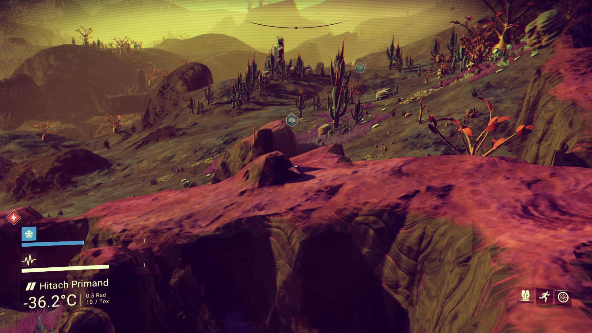 Някой би казал – „Ама то всяка планета си има специални атмосферни условия – мраз, бури, радиация, огромни жеги, токсичност – ако ти падне защитата на скафандъра и умираш“. Да. Ама само на теория. Нямаше нито един момент, в който дори и да е имало далечен шанс околната среда да ме убие. Дори и да се отдалечим много от кораба си винаги има ресурси, с които да си презаредим щитовете. А на всяка планета, която посетих има предостатъчно начини те винаги да са пълни. Основно под формата на намиращи се под път и над път ресурси. Дори и някое ниво като жега, токсичност и прочее да е стигнало критични граници, то в рамките на няколко минути можете да се спасите. И то ако не намерите подслон, каквито има немалко.
