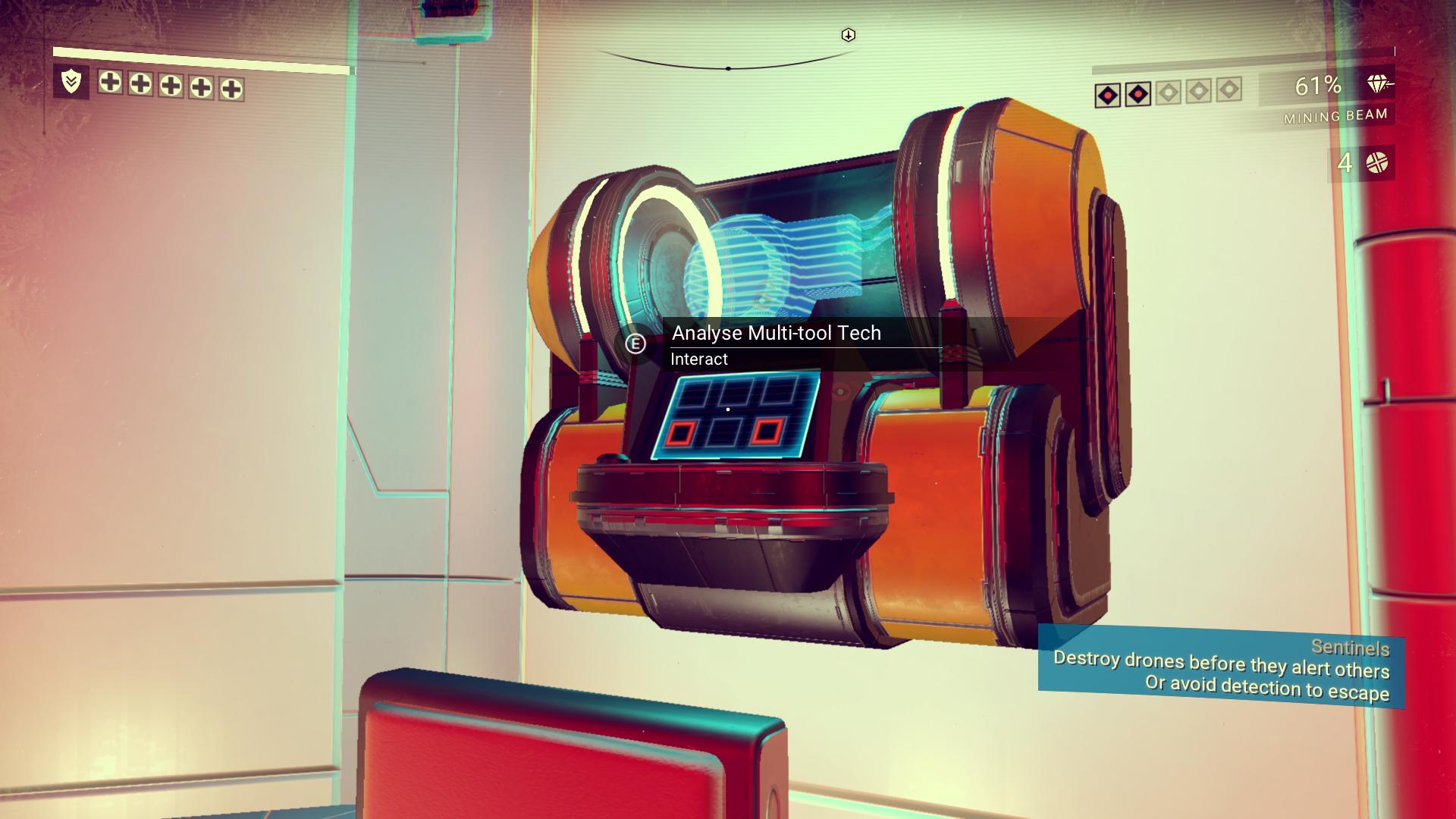 Ъпгрейдите на multi-tool-а се намират из стените на изоставени или населени бази из планетите - вие трябва просто да обикаляте като изоглавени и натискате E, докато намерите всичко, което ви е нужно[/caption]