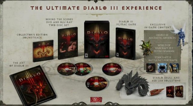 Тук приключвам темата с помията WoW и минавам към една потенциално яка игра - Diablo III. На BlizzCon беше обявено колекционерското издание на играта, включващо безплатно Diablo II, 4 GB флашка с формата на Soulstone (нали се сещате, верижките, дето съдържат есенцията на Диабло, Бейл и Мефисто), поставка за флашката под формата на черепа на Диабло, Blu-Ray диск с направата на играта, както и традиционната книжка с арта на играта. Цената не е известна, но едва ли ще е под 150 лева у нас.